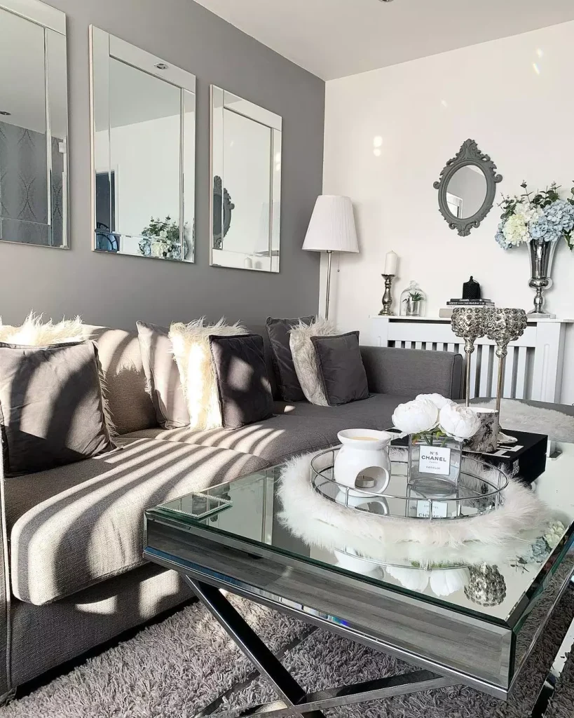 Don’t be afraid to play with different shades of grey. I love layering tones like light silver, dove grey, and charcoal throughout the room. The key is to balance them correctly, so the room doesn’t feel monotonous. You can use light grey walls and introduce darker greys in the furniture or rugs. It’s a simple trick that adds dimension and keeps the space visually